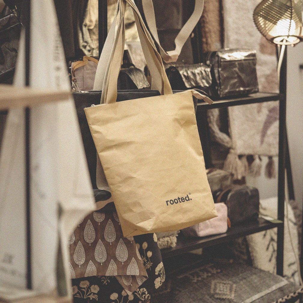 Hergestellt aus robustem und umweltfreundlichem Kraftpapier. Dies verleiht der rooted. Shopping Bag eine einzigartige Note. Der Shopper ist geräumig genug um kleine Einkäufe zu erledigen. Die Tasche ist mit Baumwolle gefüttert und kann auch verwendet werden um einen Laptop zu transportieren.